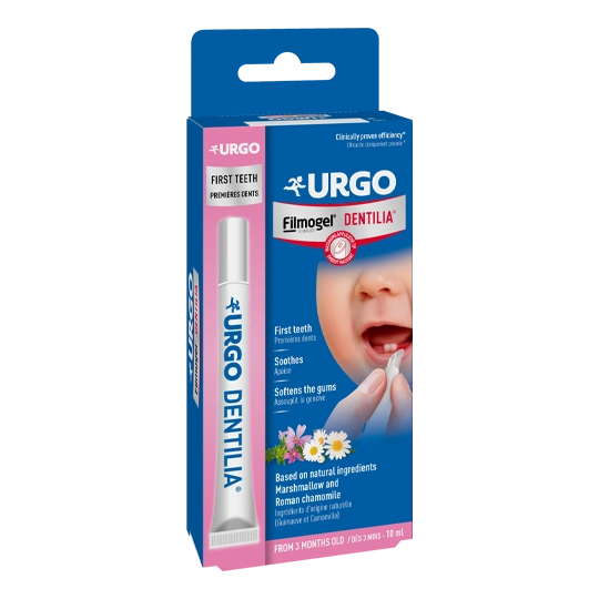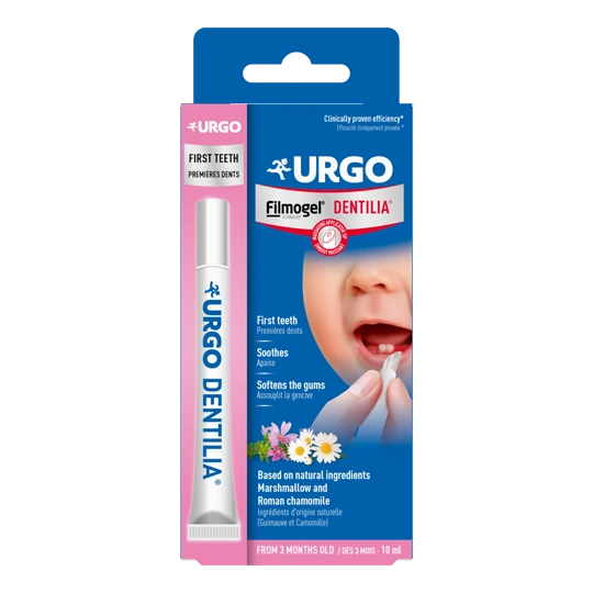 Zadbaj o komfort dziecka w okresie ząbkowania dzięki innowacyjnej formule stworzonej specjalnie po to, by łagodzić ból i podrażnienie dziąseł. Urgo Dentilia na bolesne ząbkowanie to mukoadhezyjny żel oparty na naturalnych składnikach – prawoślazie i rumianku – oraz opatentowanej technologii Filmogel®, która tworzy na dziąsłach delikatny, ochronny film. Żel przynosi ukojenie, zmniejsza dyskomfort i pozwala maluchowi lepiej przejść przez trudny czas wyrzynania się pierwszych ząbków.