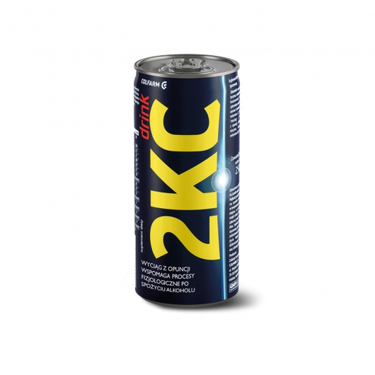 2KC DRINK to suplement diety w postaci napoju w puszce. Zawarte w nim składniki wspomagają procesy fizjologiczne w stanach zatrucia alkoholowego (tzw. kaca) oraz przyspieszają powrót sił witalnych i energii.