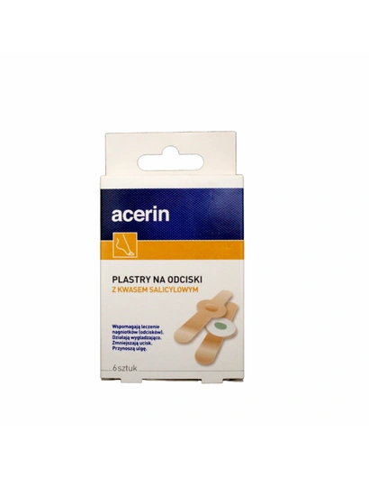 • Plastry z kwasem salicylowym Acerin do usuwania nagniotków i odcisków.