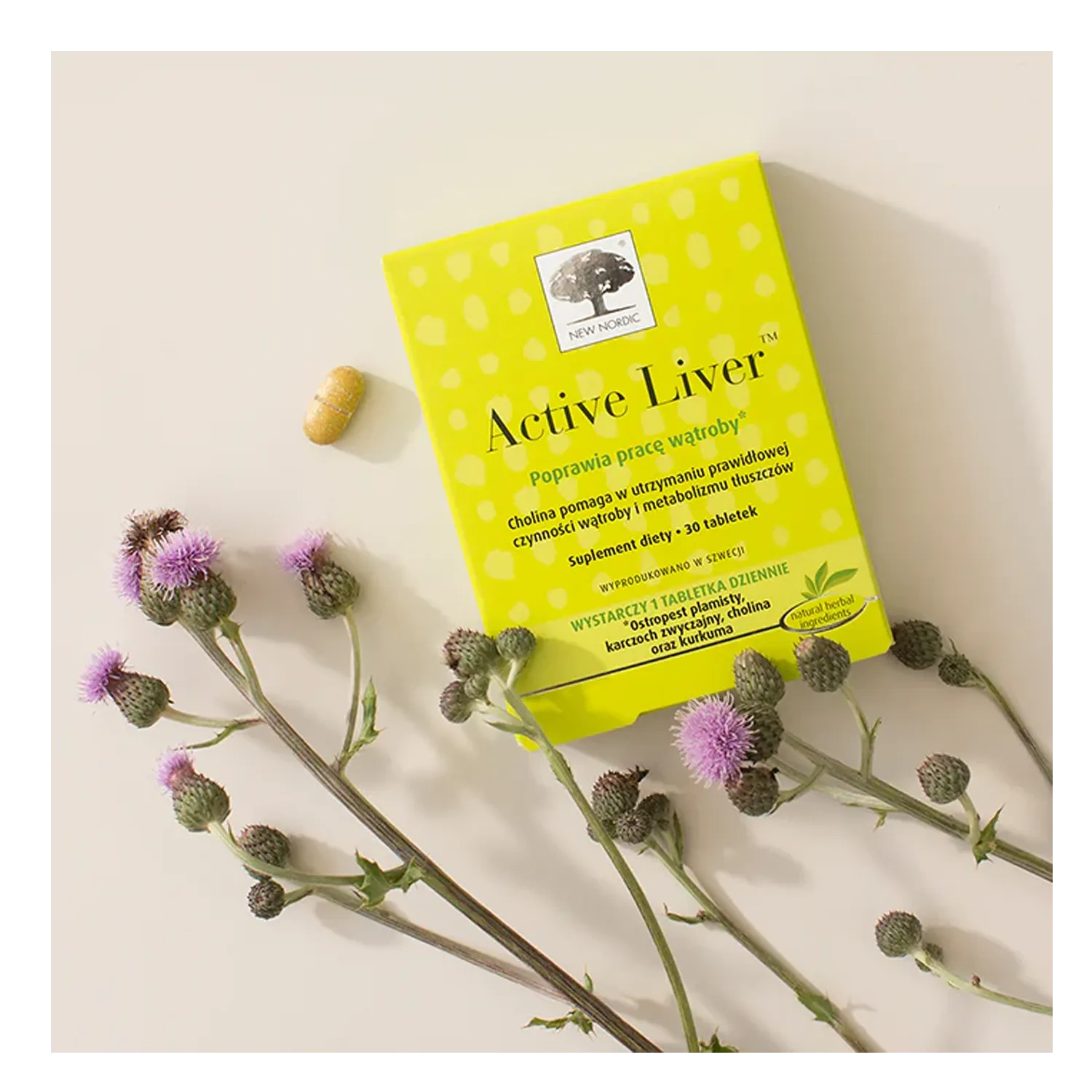 Active Liver to suplement diety opracowany w Szwecji, stworzony z myślą o osobach, które chcą wspierać naturalne procesy związane z prawidłową pracą wątroby i metabolizmem tłuszczów. Formuła zawiera kompozycję ekstraktów roślinnych – ostropestu plamistego, karczocha zwyczajnego, kurkumy – oraz cholinę, która pomaga w utrzymaniu prawidłowej czynności wątroby i prawidłowego metabolizmu tłuszczów. Preparat jest wygodny w stosowaniu: wystarczy 1 tabletka dziennie, aby uzupełniać dietę o składniki wspomagające funkcjonowanie wątroby. Active Liver to propozycja dla osób, które prowadzą intensywny tryb życia, chcą zadbać o układ trawienny lub szukają wsparcia dla codziennej równowagi metabolicznej.