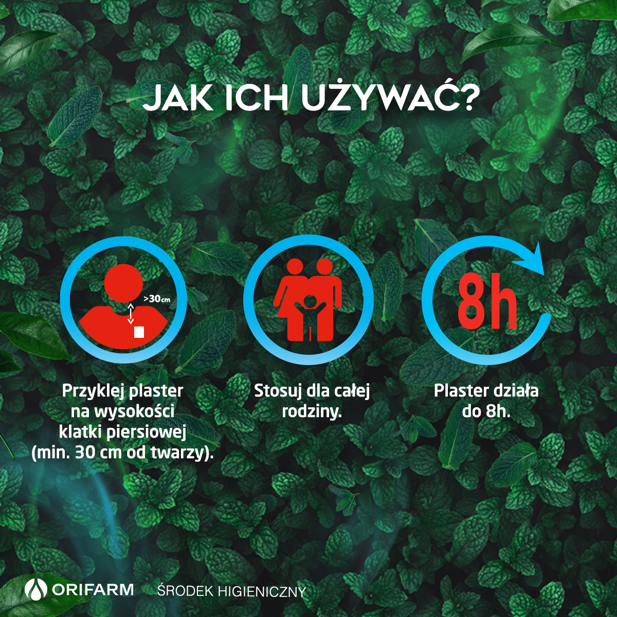 Używaj jednego plastra przez maksimum 8h, po czym usuń go z ubrania
