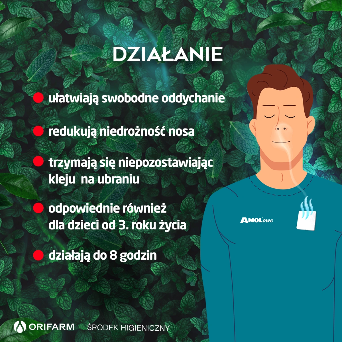 - Plasterki na bazie naturalnych olejków eterycznych z mięty, lawendy, cynamonu i goździków - tworzą świeży zapach, który pomoże w redukcji niedrożności nosa i ułatwi swobodne oddychanie.