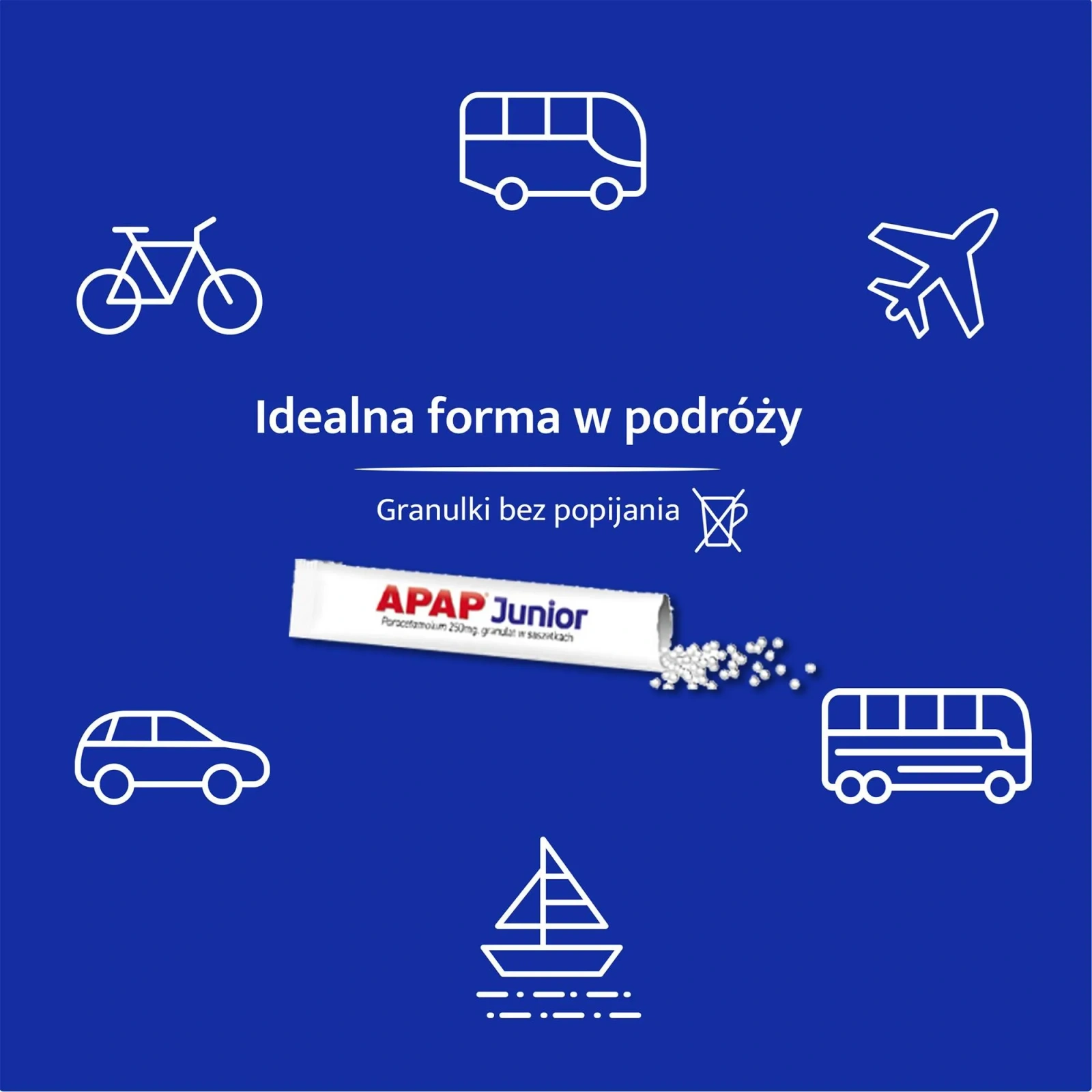 • APAP Junior jako substancję czynną zawiera paracetamol o działaniu przeciwbólowym i przeciwgorączkowym.