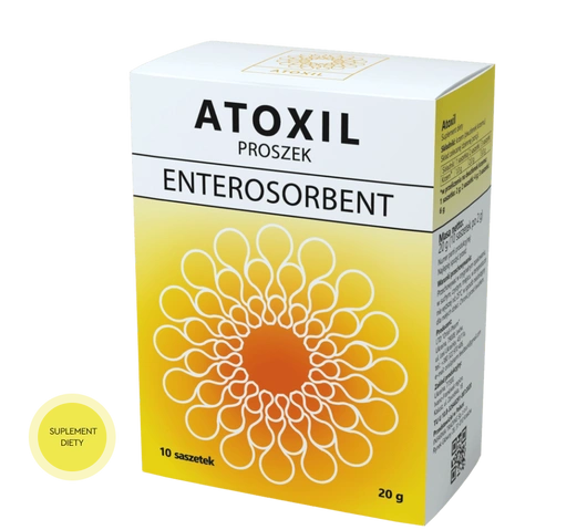 Atoxil® w saszetkach to suplement diety w proszku, zawierający dwutlenek krzemu, przeznaczony do przygotowania zawiesiny doustnej. Produkt skutecznie wspiera usuwanie toksyn oraz niepożądanych substancji z przewodu pokarmowego, działając jako selektywny sorbent jelitowy czwartej generacji.