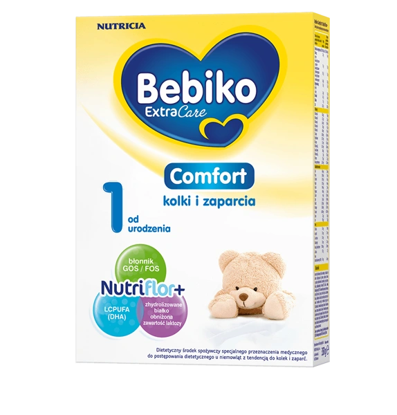 Bebiko Comfort 1 NutriFlor+ zostało stworzone z myślą o niemowlęciu, które nie jest karmione piersią, a cierpi z powodu kolek i/lub zaparć. Odpowiednio opracowany skład produktu sprawia, że Bebiko Comfort 1 NutriFlor+ łagodzi dolegliwości trawienne małego brzuszka oraz powoduje, że stolce dziecka są bardziej miękkie. Bebiko Comfort 1 NutriFlor+ jest bardziej lekkostrawne i delikatne, ponieważ zawiera białko o nieznacznym stopniu hydrolizy i ma obniżony poziom laktozy.