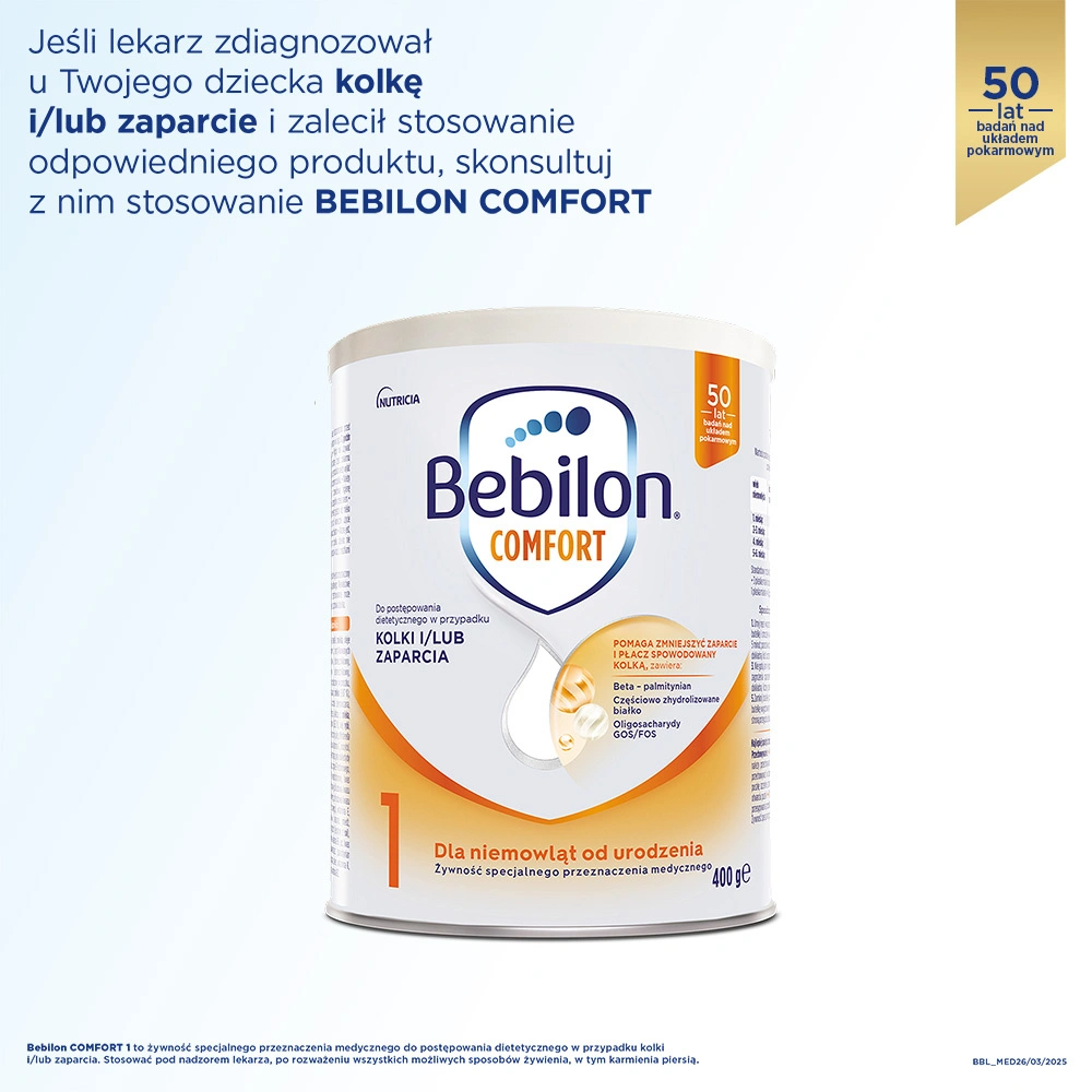 Bebilon Comfort 1 żywność specjalnego przeznaczenia medycznego dla niemowląt od urodzenia, 400 g