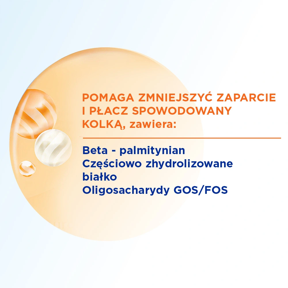 Bebilon Comfort 1 to żywność specjalnego przeznaczenia medycznego, opracowana z myślą o niemowlętach, w szczególności w przypadku problemów z kolkami i zaparciami. Produkt zawiera unikalną kompozycję składników, w tym beta-palmitynian, częściowo hydrolizowane białko oraz prebiotyki GOS/FOS, wspomagające prawidłowe funkcjonowanie układu pokarmowego niemowlęcia.