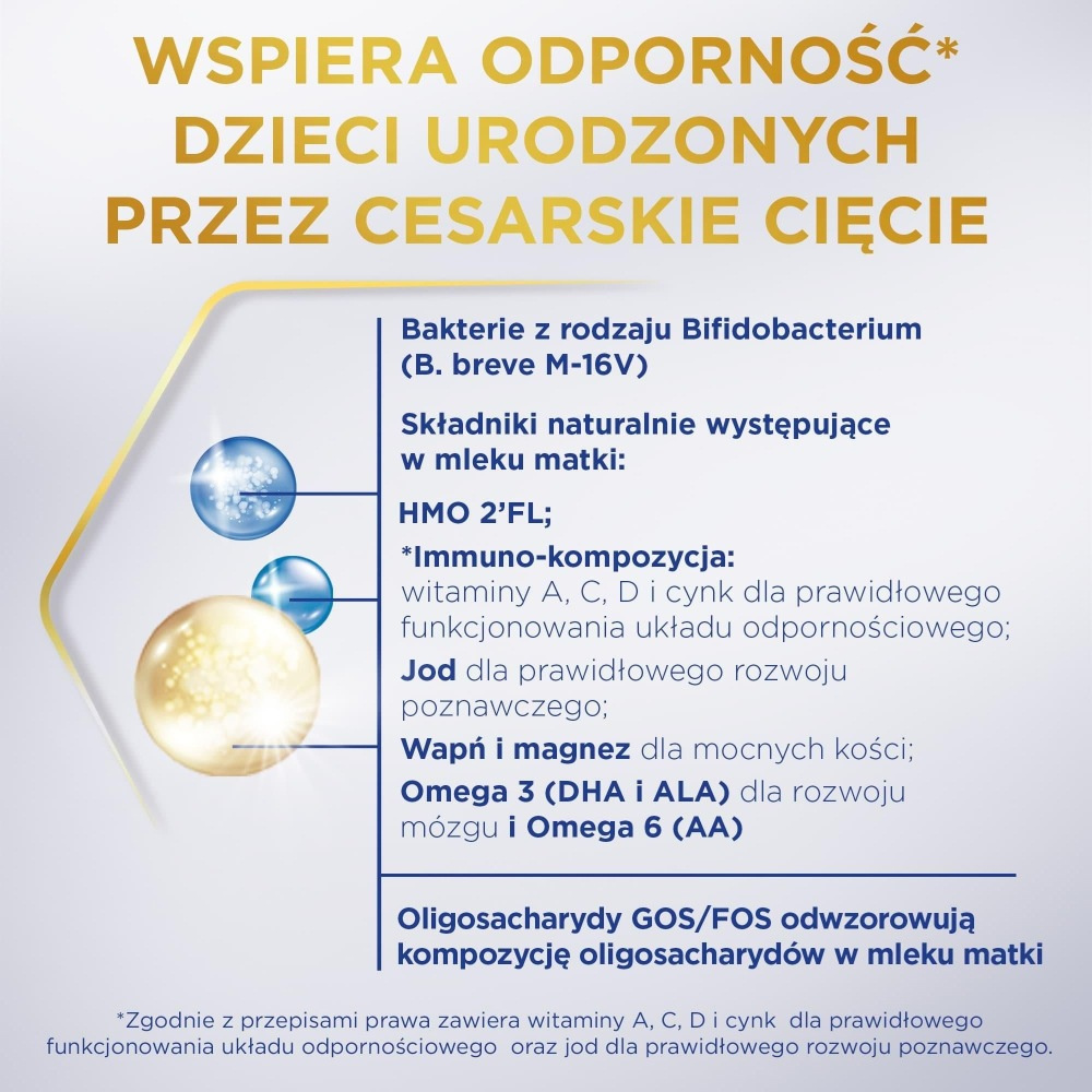 Mleko to zostało stworzone na bazie składników naturalnych występujących w mleku matki, takich jak HMO 2’FL, które wspomagają rozwój i odporność niemowląt. Bebilon PROfutura CESARBIOTIK 2 zawiera również kluczowe składniki, takie jak witaminy A, C, D, cynk, jod, wapń i magnez, które pomagają w prawidłowym rozwoju dziecka.