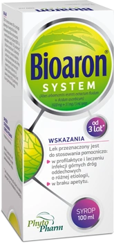 Bioaron SYSTEM (1920 mg + 51 mg)/5 ml to klasyczny syrop z aloesem drzewiastym i witaminą C, stosowany pomocniczo w infekcjach górnych dróg oddechowych oraz przy braku apetytu. Preparat przeznaczony jest dla dzieci powyżej 3. roku życia, młodzieży i dorosłych – sprawdzi się zarówno w sezonie jesienno-zimowym, jak i w okresach obniżonej odporności, częstych przeziębień czy osłabionego łaknienia. Bioaron SYSTEM pomaga organizmowi sprawniej walczyć z infekcjami bakteryjnymi i wirusowymi, może skracać czas trwania choroby, łagodzić jej objawy i wspierać prawidłową odpowiedź układu immunologicznego. Stosowany profilaktycznie zmniejsza skłonność do nawracających infekcji, a dodatkowo – co potwierdzono w badaniach obserwacyjnych u dzieci – wspomaga apetyt, co bywa szczególnie ważne u „niejadków”. To wygodny syrop na odporność dla dzieci powyżej 3 lat i całej rodziny, który można stosować zarówno w trakcie infekcji, jak i w cyklach profilaktycznych.