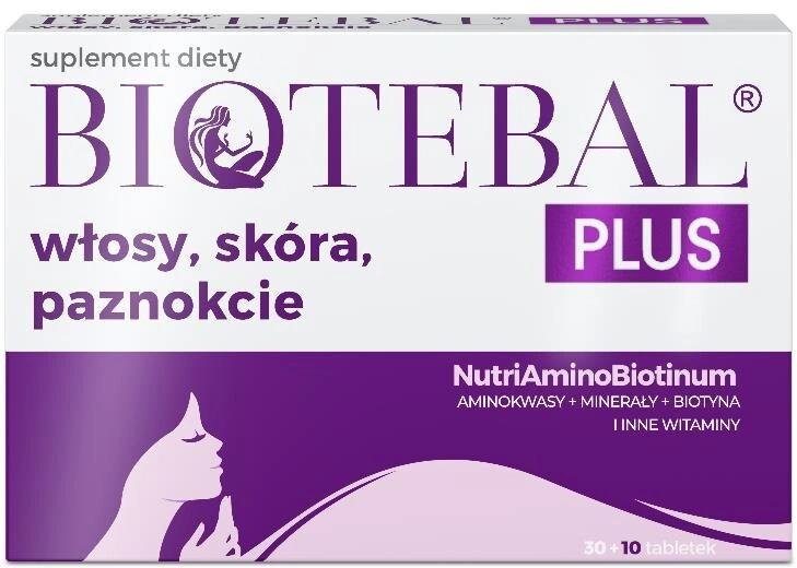 Biotebal PLUS włosy, skóra, paznokcie suplement diety (tabletki) polecany jest do uzupełniania niedoborów składników odżywczych (witamin, minerałów, aminokwasów), których potrzebują Twoje włosy, skóra i paznokcie.