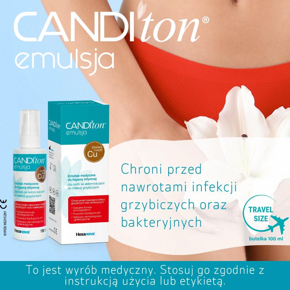 Canditon® emulsja to wyrób medyczny do higieny intymnej, który wspomaga miejscowe leczenie infekcji intymnych, w szczególności u osób ze skłonnościami do infekcji o charakterze grzybiczym.