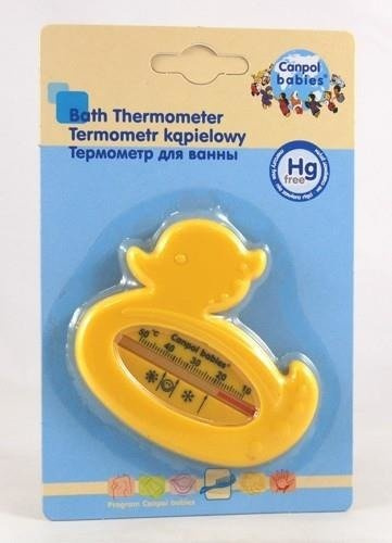 - Działanie: Termometr do kąpieli w kształcie kaczuszki. Pozwoli dokładnie zmierzyć temperaturę wody, a ciekawy kształt będzie atrakcją podczas kąpieli maluszka. Prawidłowa temperatura wody powinna wynosić 37 stopni Celsjusza i je