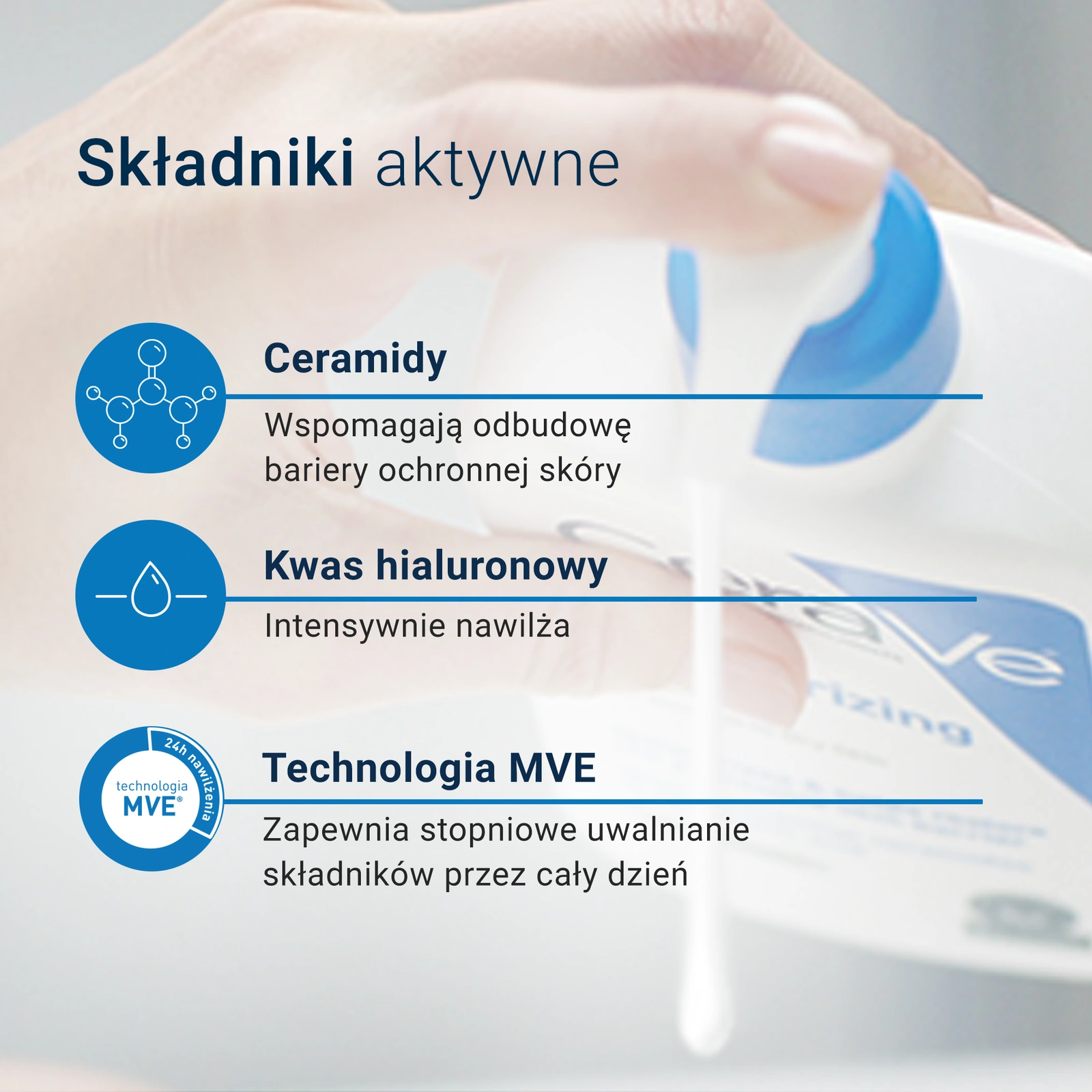 - Cera Ve Nawilżająca emulsja do skóry normalnej i suchej. Nawilża i wspiera odbudowę bariery ochronnej skóry twarzy i ciała. Zawiera 3 kluczowe ceramidy i kwas hialuronowy. Emulsja bezzapachowa. Hipoalergiczna. Niekomedogenna.