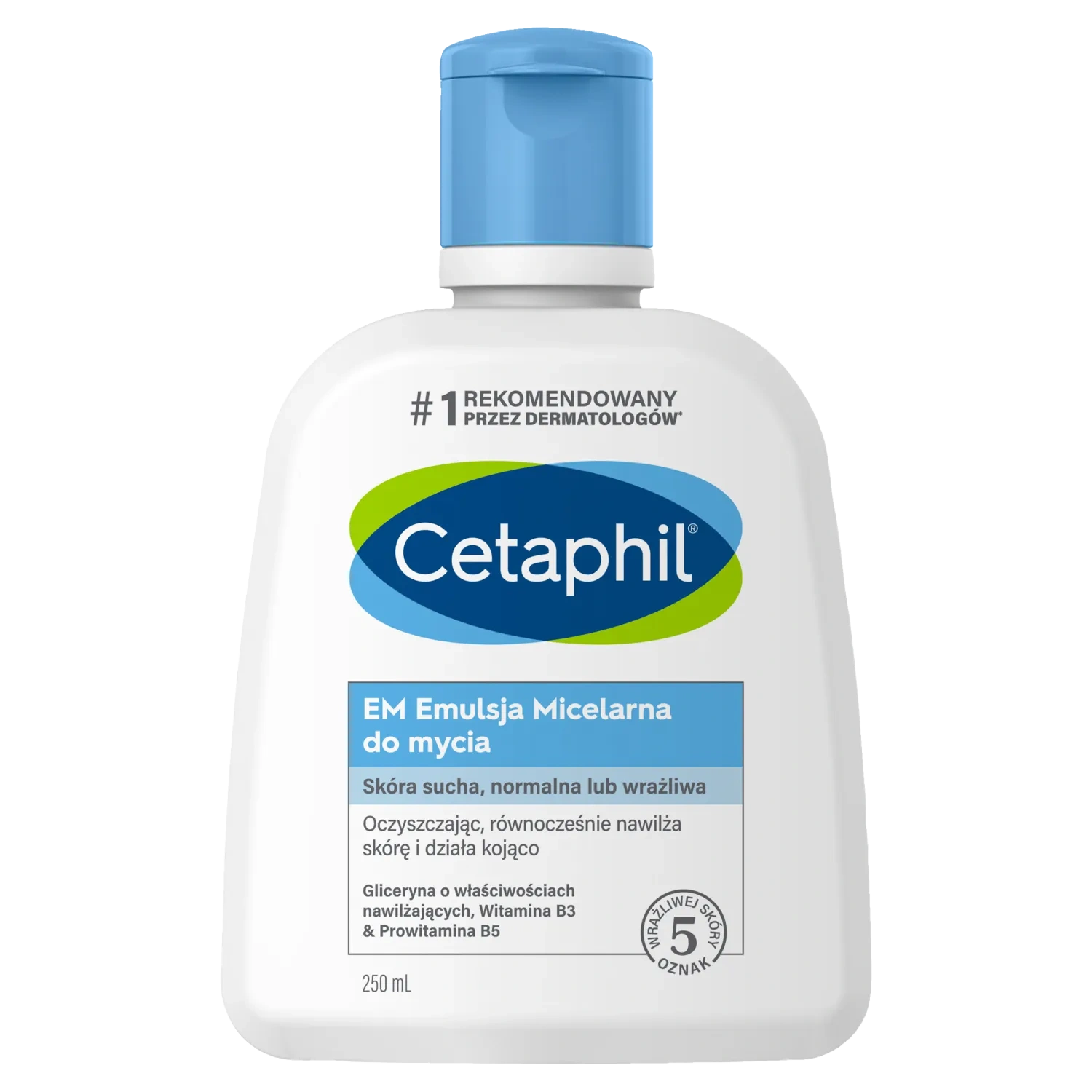 Cetaphil EM Emulsja micelarna do mycia to wyjątkowo łagodny, kremowy preparat, który skutecznie oczyszcza skórę suchą, normalną i wrażliwą, jednocześnie utrzymując jej naturalny poziom nawilżenia. Dzięki zaawansowanej micelarnej formule emulsji kosmetyk usuwa makijaż, zanieczyszczenia i nadmiar sebum, nie naruszając bariery hydrolipidowej. Cetaphil EM Emulsja micelarna do mycia zawiera naukowo opracowaną mieszankę niacynamidu, pantenolu i gliceryny, które działają kojąco, nawilżająco i wzmacniająco, pozostawiając skórę miękką, elastyczną i wolną od uczucia ściągnięcia. Idealna również dla dzieci już od pierwszych dni życia.