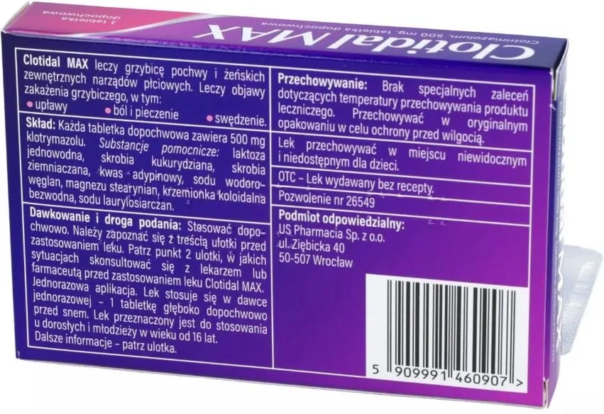 - Clotidal MAX 500 mg to lek dostępny bez recepty, przeznaczony do leczenia zakażeń pochwy i sromu. Wykazuje skuteczność przeciwko drobnoustrojom, takim jak dermatofity, drożdżaki i pleśnie.