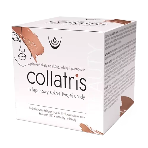 Suplement diety Collatris Beauty to kompozycja peptydów kolagenowych pozyskanych z kolagenu typu I i III oraz witamin i minerałów wpływających na poprawę kondycji skóry, włosów i paznokci. Ponadto produkt zawiera w składzie również kwas hialuronowy, koenzym Q10, ekstrakt ze skrzypu polnego oraz aminokwasy – L-metioninę, L-cysteinę.