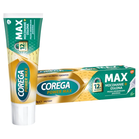 - Corega Power Max Mocowanie + Osłona to krem mocujący do protez zębowych. bez dodatku aromatów i barwników, o smaku miętowym. Tubka wyposażona jest w precyzyjny aplikator. Tekturowe opakowanie, wykonane z materiału z recyklingu, można poddać dalszemu recyk