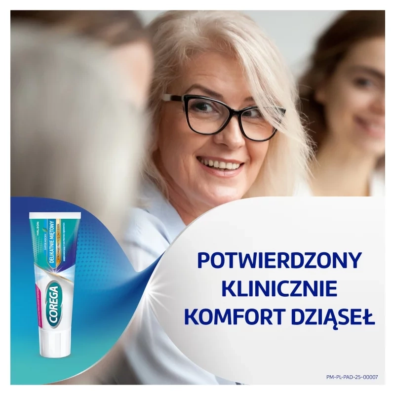 Krem mocujący Corega Super Mocny Delikatnie Miętowy to wyrób medyczny, który zapewnia pewne i długotrwałe mocowanie protez zębowych aż do 12 godzin. Chroni przed dostawaniem się resztek pokarmowych pod protezę, poprawia komfort codziennego użytkowania i daje uczucie świeżości dzięki delikatnie miętowemu smakowi. Preparat działa w trzech kierunkach, stabilizując protezę w jamie ustnej i zapewniając naturalne poczucie pewności w mówieniu i jedzeniu.
