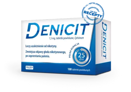 - DENICIT to lek bez recepty wskazany w odzwyczajaniu się od palenia tytoniu i zmniejszeniu głodu nikotynowego u osób, które chcą przestać palić.
