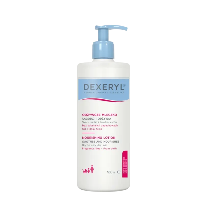 Dexeryl Mleczko Odżywcze to dermokosmetyk stworzony z myślą o skórze suchej, bardzo suchej, a także tej ze skłonnością do atopii. Dzięki połączeniu lekkiej konsystencji mleczka z mocą odżywczego balsamu, produkt natychmiast łagodzi uczucie ściągnięcia i swędzenia, zapewniając 24-godzinne odżywienie i komfort.
