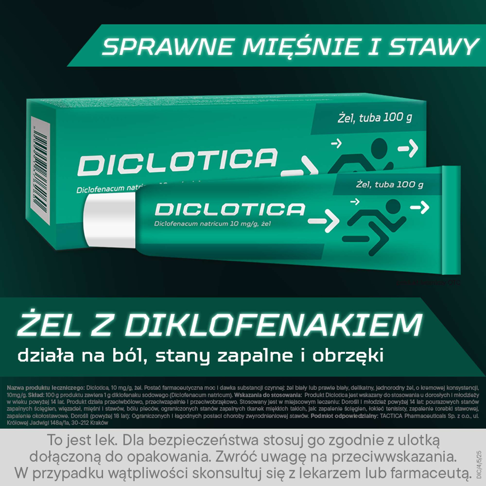 - Diclotica żel - lek bez recepty - posiada działanie przeciwzapalne i przeciwbólowe.