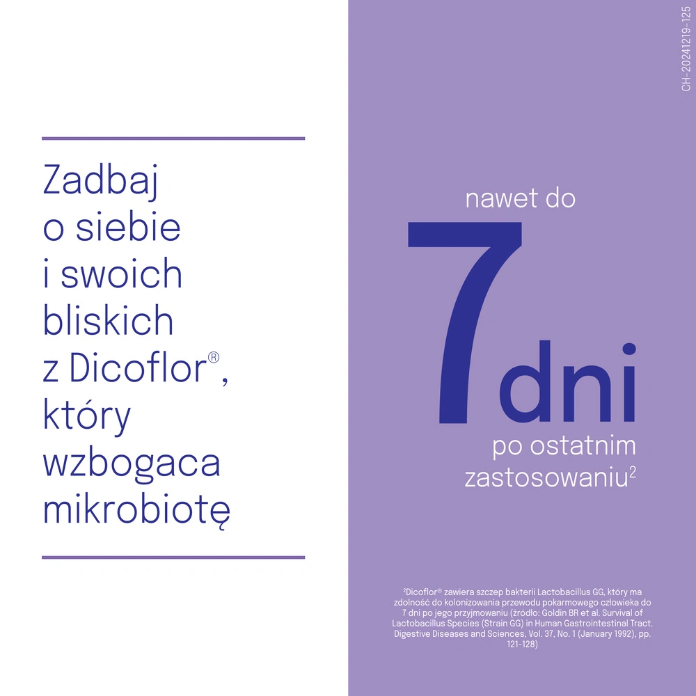 Dicoflor Baby to suplement diety w postaci zawiesiny, zawierający liofilizowane żywe kultury bakterii Lactobacillus rhamnosus GG. Produkt przeznaczony dla niemowląt, dzieci oraz dorosłych, wspierający równowagę mikroflory jelitowej, szczególnie w czasie antybiotykoterapii.