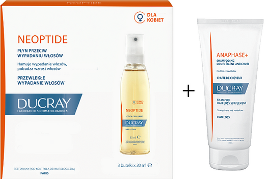 DUCRAY NEOPTIDE Płyn przeciw wypadaniu włosów dla kobiet 30 ml x 3 buteleczki + ANAPHASE+ Szampon uzupełniający przeciw wypadaniu włosów 100 ml