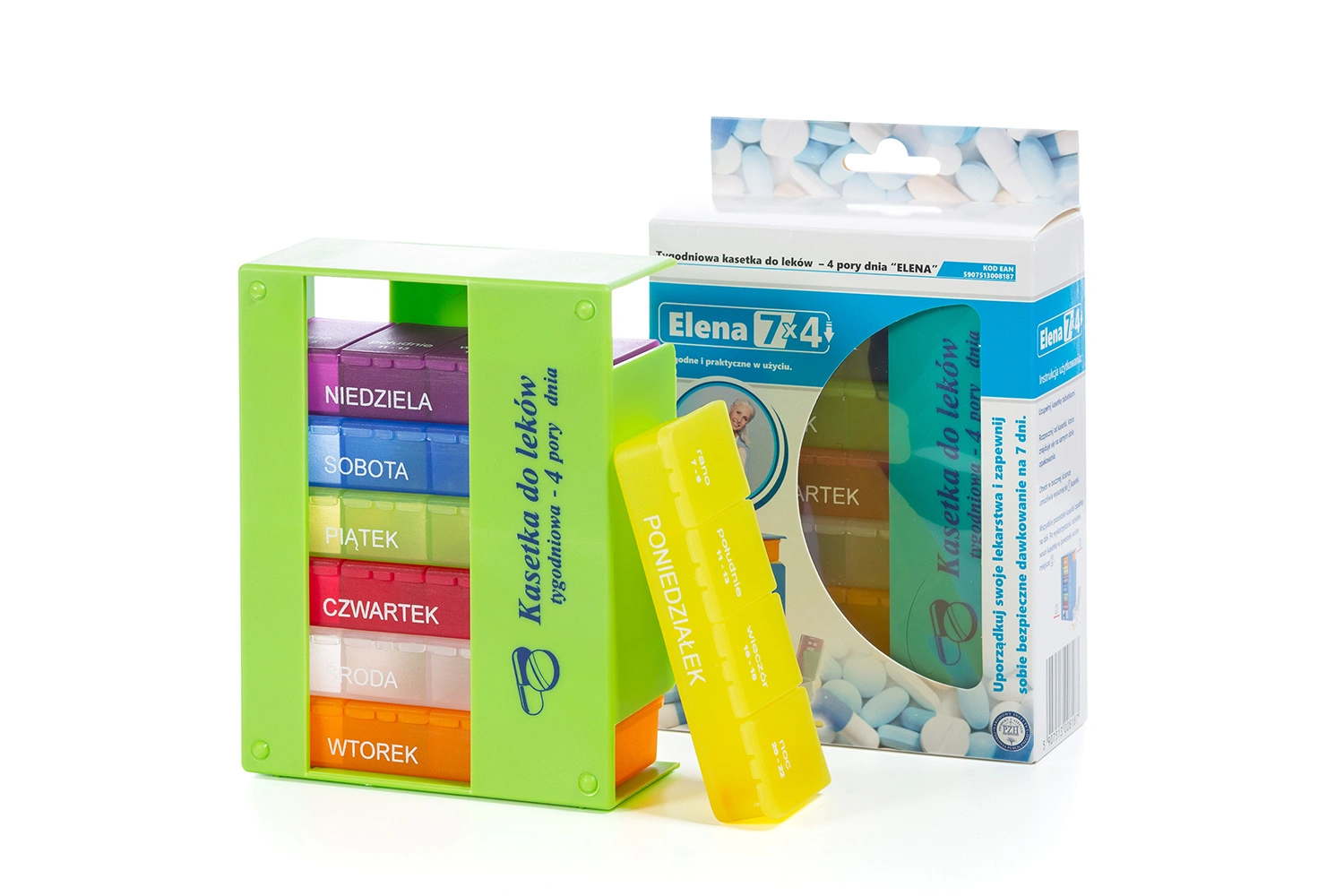Tygodniowa kasetka do leków ELENA 7×4 – wygodny organizer na 4 pory dnia