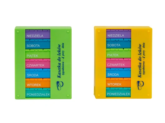 - Praktyczny organizer umożliwiający wygodne zaplanowanie tabletek na cały tydzień z podziałem na cztery pory dnia.