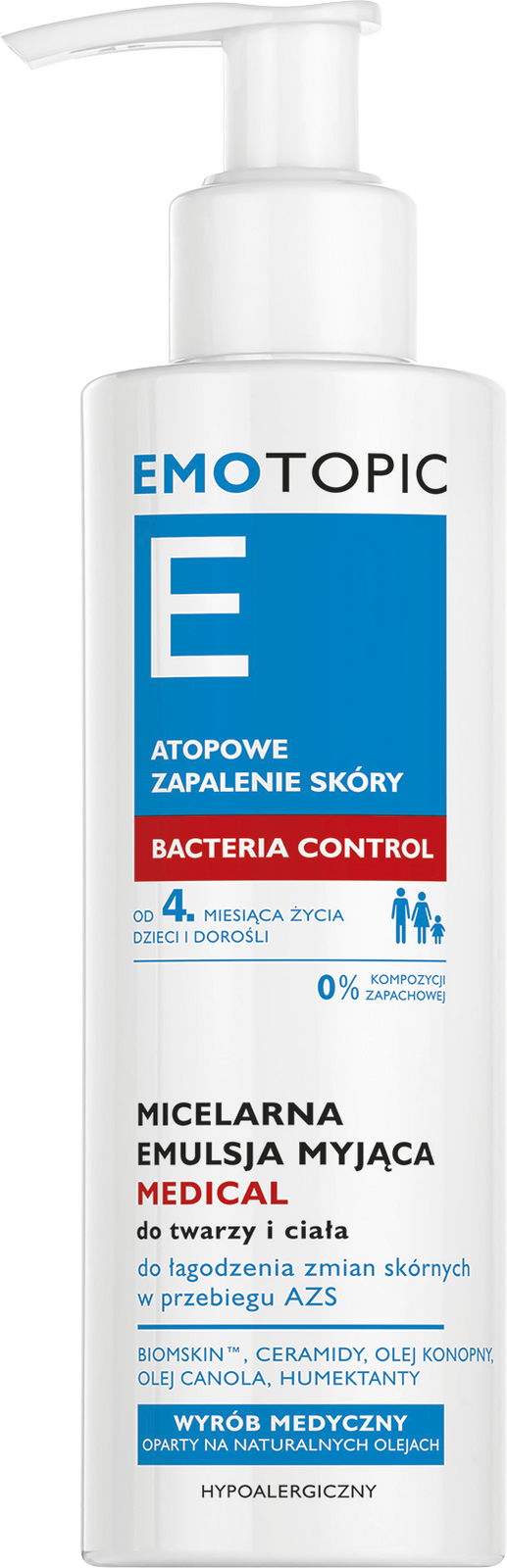 EMOTOPIC Bacteria Control Micelarna emulsja myjąca Medical do twarzy i ciała, 190 ml