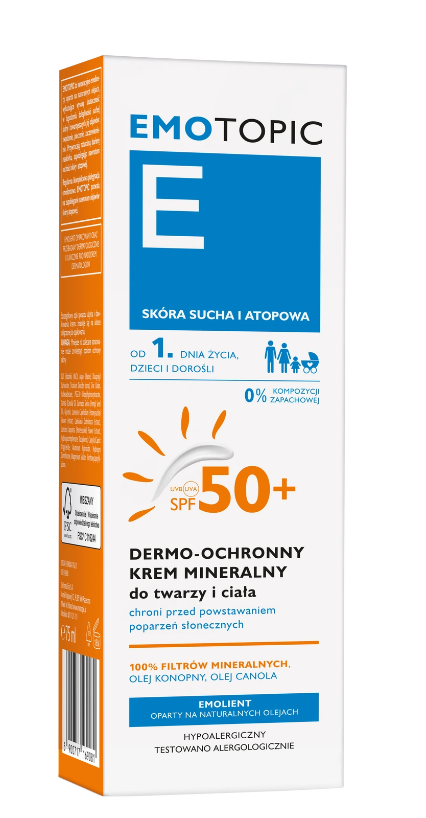Emotopic Dermo-ochronny krem mineralny SPF 50+ do twarzy i ciała, 75 ml