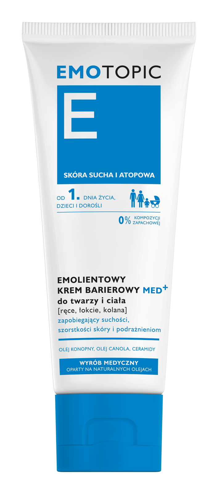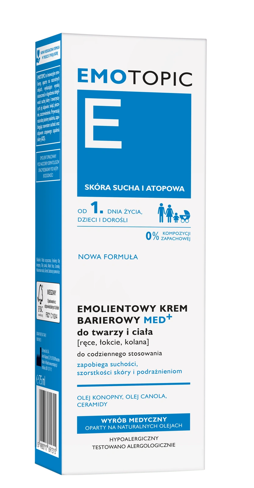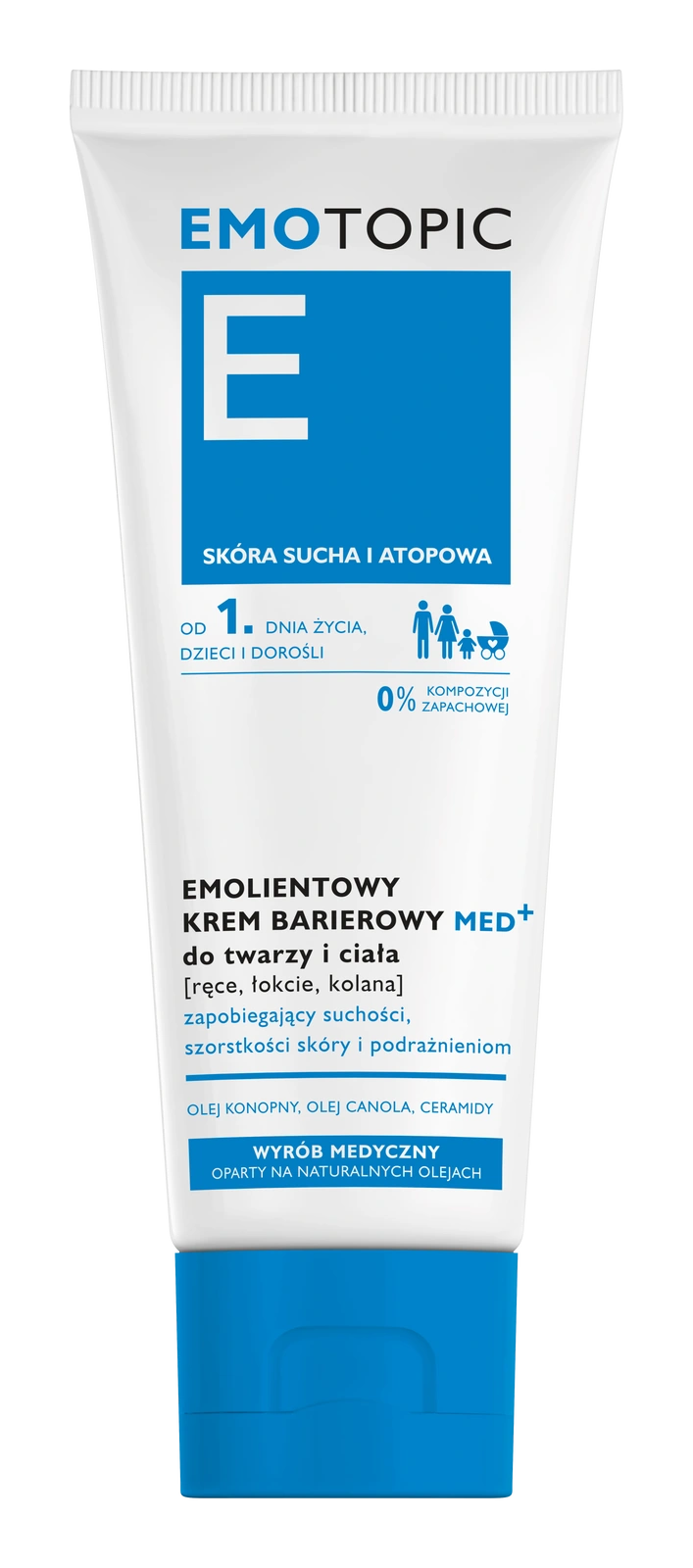 EMOTOPIC Emolientowy krem barierowy MED+ do twarzy i ciała [ręce, łokcie, kolana] do codziennego stosowania, 75ml