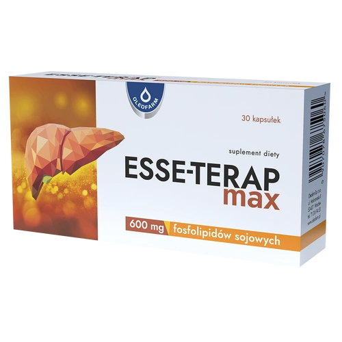 Esse-Terap MAX to suplement diety przeznaczony dla osób dorosłych, zawierający ekstrakt z nasion soi standaryzowany na fosfolipidy sojowe, w tym fosfatydylocholinę oraz cholinę, które są istotnymi składnikami błon komórkowych, w tym komórek wątroby.