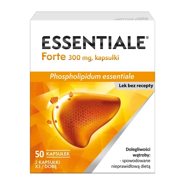 Essentiale Forte to lek OTC zawierający fosfolipidy z nasion soi, które wspomagają odbudowę uszkodzonych komórek wątroby. Stosowany jest w celu łagodzenia subiektywnych dolegliwości takich jak brak apetytu, uczucie ucisku w prawym nadbrzuszu i dyskomfort trawienny, wynikających z uszkodzenia wątroby.
