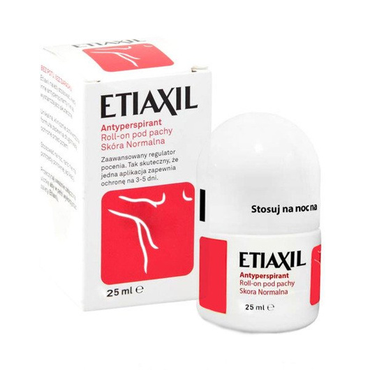 Dawkowanie: Etiaxil należy stosować na noc przed pójściem spać kiedy gruczoły potowe są mniej aktywne. W początkowej fazie należy stosować Etiaxil każdego wieczoru do osiągnięcia pożądanego efektu (zwykle przez tydzień). Gdy masz wrażliwą skórę stosuj Etiaxil co drugi wieczór (przez dwa tygodnie). Po zastosowaniu Etiaxilu trzeba pozwolić skórze całkowicie wyschnąć. Rano umyć skórę wodą i mydłem. Nie nakładać powtórnie preparatu. Następnie można użyć dezodorant zapachowy lub perfumy. Aby utrzymać intensywność wydzielania się potu pod kontrolą stosuj Etiaxil 2-3 w tygodniu, lub tak często jak potrzeba. Etiaxil Roll-on nakładaj w centralnej części pachy dwoma ruchami: w górę i dół. Skóra musi być całkowicie sucha i nieuszkodzona.