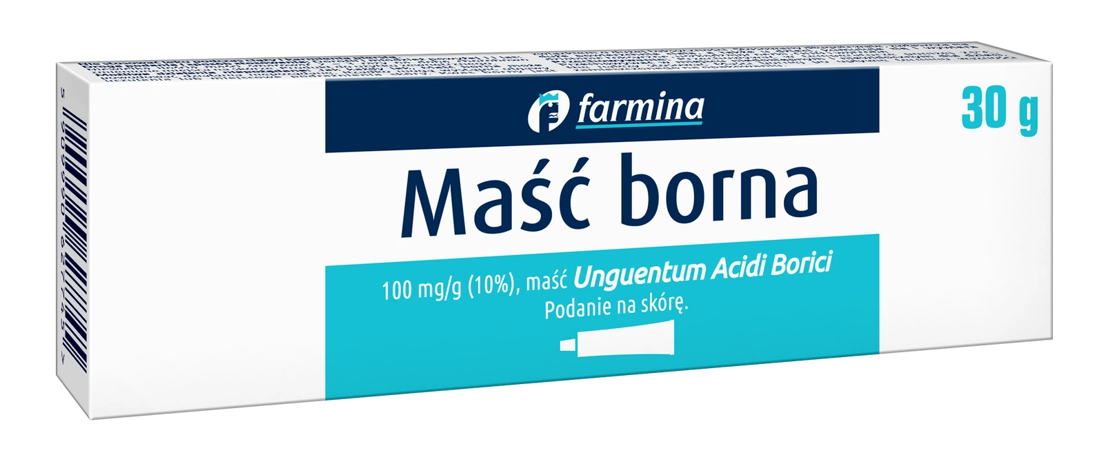 Farmina Maść borna 10% (Unguentum Acidi Borici) to lek dostępny bez recepty (OTC), przeznaczony do miejscowego stosowania na skórę. Zawiera kwas borowy o właściwościach przeciwzapalnych i antyseptycznych, dzięki czemu wspiera pielęgnację skóry w stanach zapalnych z ryzykiem nadkażenia. Preparat działa łagodząco i ochronnie, a jego prosta formuła oparta jest jedynie na dwóch składnikach – kwasie borowym i wazelinie białej.