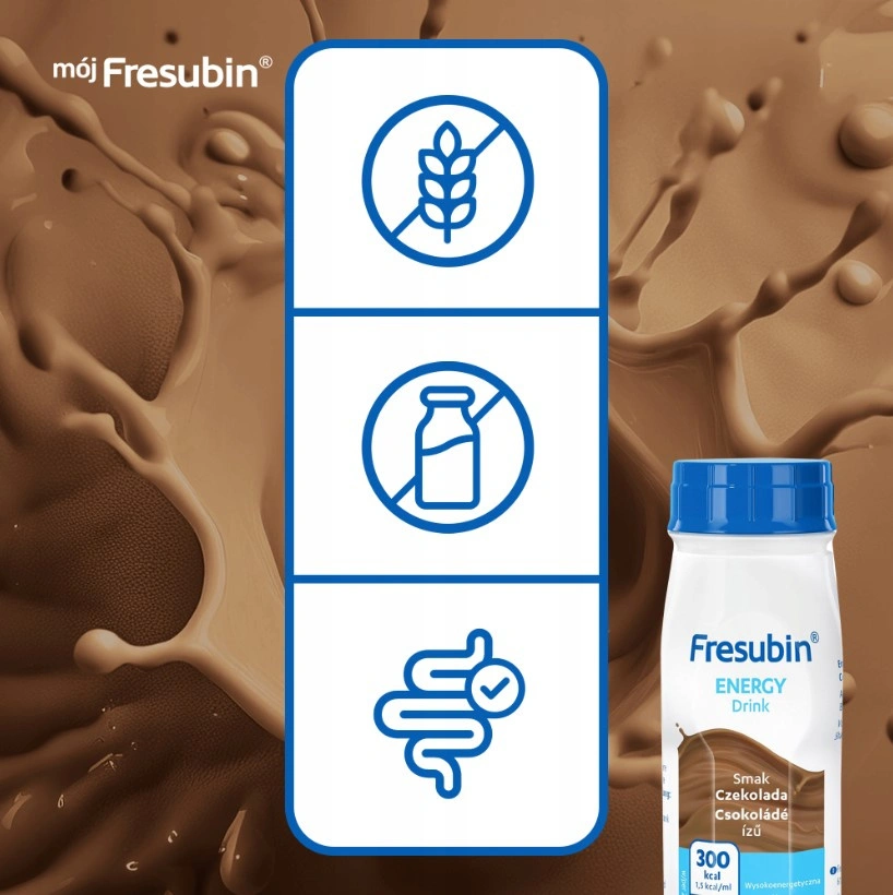 Fresubin Energy Drink o smaku czekolady to wysokoenergetyczny preparat odżywczy stworzony z myślą o osobach, które potrzebują skutecznego wsparcia żywieniowego w okresie osłabienia, rekonwalescencji, braku apetytu czy niedożywienia. Dzięki gęstej wartości odżywczej, wysokiej zawartości białka i pysznej czekoladowej formule, produkt pomaga uzupełnić zwiększone zapotrzebowanie energetyczne i poprawić ogólną kondycję organizmu. Fresubin Energy Drink – czekolada to łatwy i wygodny sposób na dostarczenie 300 kcal w jednej butelce, idealny dla osób mających trudność ze spożywaniem tradycyjnych posiłków.