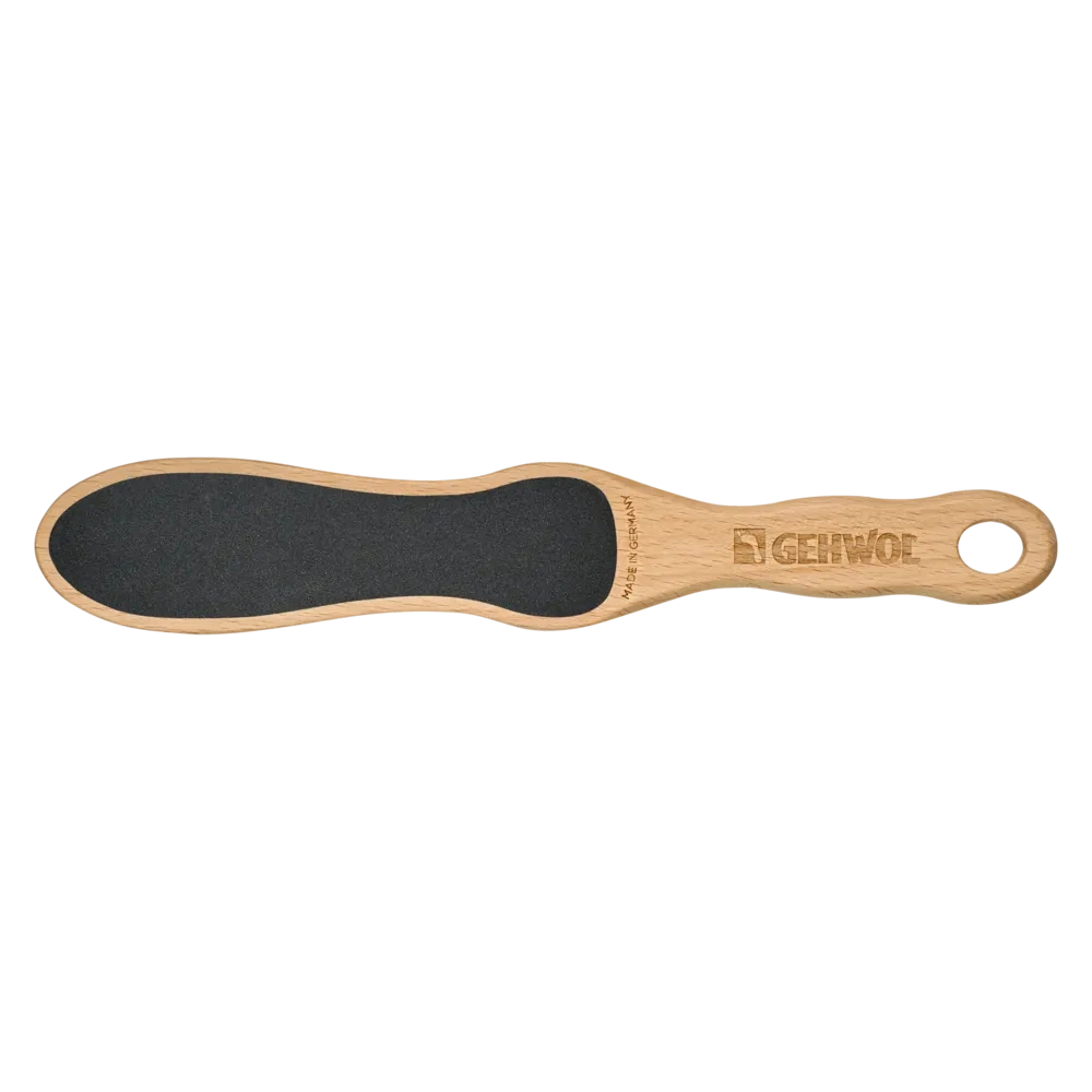 - Dwustronny drewniany pilnik do stóp, który skutecznie usuwa zrogowacenia i wygładza skórę.
