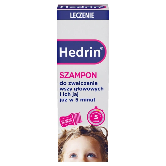 Hedrin® Szampon to wyrób medyczny przeznaczony do skutecznego usuwania wszy głowowych oraz ich jaj (gnid) w trakcie rutynowego mycia włosów. Jego formuła została opracowana tak, aby działać szybko, bezpiecznie i w sposób wygodny dla całej rodziny. Preparat można stosować u dzieci już od 1. roku życia oraz u dorosłych, a dzięki działaniu fizycznemu – bez użycia pestycydów – produkt nie powoduje rozwoju odporności u pasożytów. Krótki, 5-minutowy czas działania oraz możliwość pominięcia dodatkowego mycia sprawiają, że Hedrin® doskonale sprawdza się w codziennym użytkowaniu.