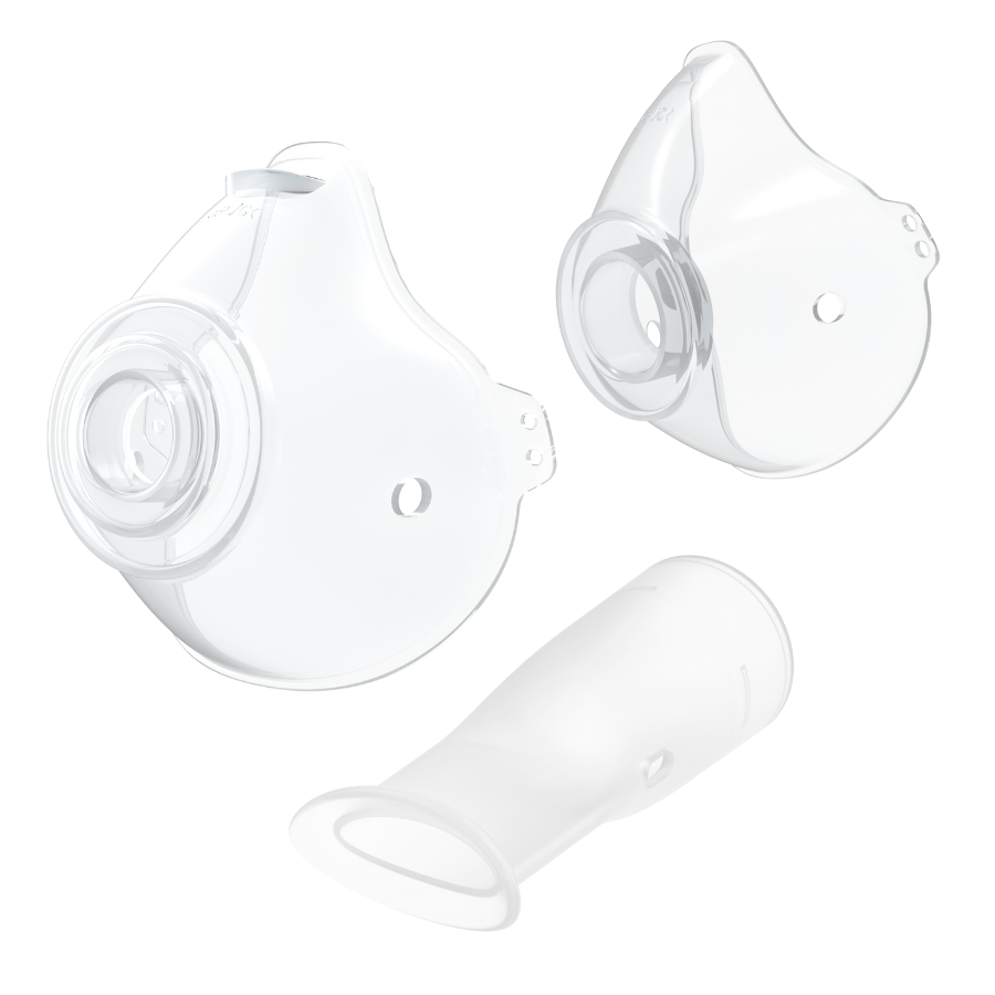 • Kompletny zestaw – maseczka dziecięca, maseczka dla dorosłych, ustnik i kabel USB zapewniają gotowość do nebulizacji od razu po wyjęciu z pudełka.