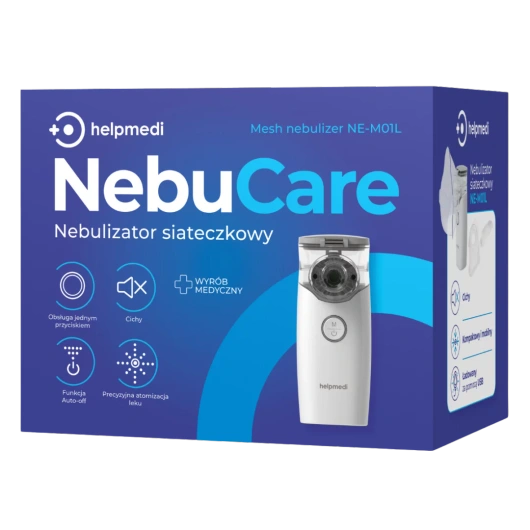 NebuCare to nowoczesny nebulizator siateczkowy przeznaczony do terapii inhalacyjnej. Wyróżnia się kompaktowym rozmiarem oraz cichą pracą, co zapewnia wygodę użytkowania zarówno w domu, jak i w podróży. Urządzenie jest bezprzewodowe, dzięki wbudowanemu akumulatorowi litowo-jonowemu, który można ładować za pomocą kabla USB, również w samochodzie.