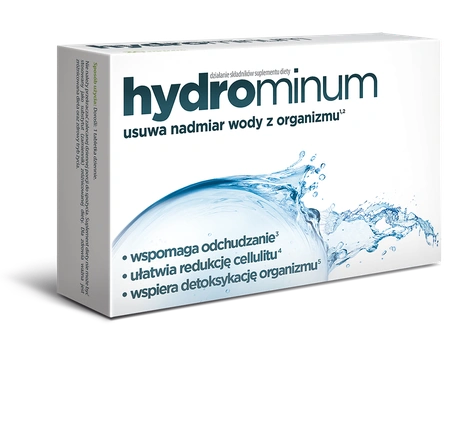 - Hydrominum usuwa nadmiar wody z organizmu, oczyszcza go z toksyn, pomaga w kontroli i redukcji wagi ciała oraz w walce z cellulitem.