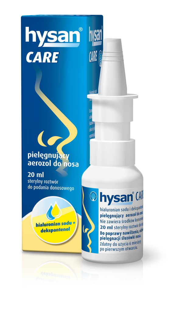 Hysan Care® to wyrób medyczny przeznaczony dla dzieci i dorosłych, stworzony w celu nawilżenia, odświeżenia i pielęgnacji błony śluzowej nosa. Dzięki zawartości hialuronianu sodu oraz dekspantenolu wspiera naturalną regenerację, ułatwia oddychanie i przynosi ulgę w podrażnieniach spowodowanych suchością, katarem czy działaniem niekorzystnych warunków środowiskowych (klimatyzacja, wiatr, słońce). Preparat jest sterylny, nie zawiera konserwantów i może być bezpiecznie stosowany przez kobiety w ciąży oraz karmiące piersią.