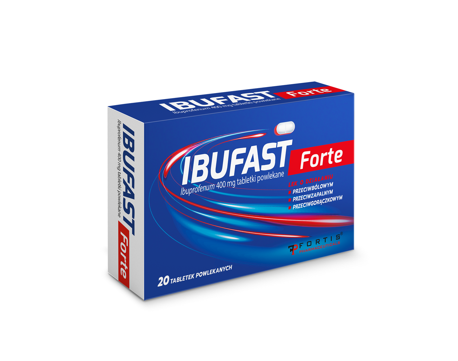 Ibufast Forte to lek przeciwbólowy, przeciwzapalny i przeciwgorączkowy zawierający 400 mg ibuprofenu w każdej tabletce. Polecany jest do krótkotrwałego leczenia bólów o nasileniu łagodnym do umiarkowanego, takich jak bóle mięśni, stawów, głowy, zębów, nerwobóle, bóle menstruacyjne czy dolegliwości towarzyszące przeziębieniu i grypie. Pomaga również obniżyć gorączkę trwającą krócej niż 3 dni. Dzięki szybkiemu działaniu i wygodnej formie tabletek powlekanych przynosi ulgę w codziennych dolegliwościach.