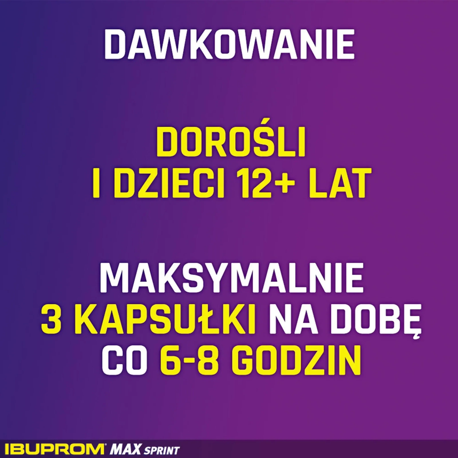 Lek Ibuprom Max Sprint zawiera ibuprofen - substancję czynną z grupy niesteroidowych leków przeciwzapalnych (NLPZ). Dzięki hamowaniu cyklooksygenazy odpowiedzialnej za powstawanie endogennych czynników indukujących procesy zapalne i gorączkę oraz pobudzających receptory bólowe, lek ten wykazuje skuteczność w: