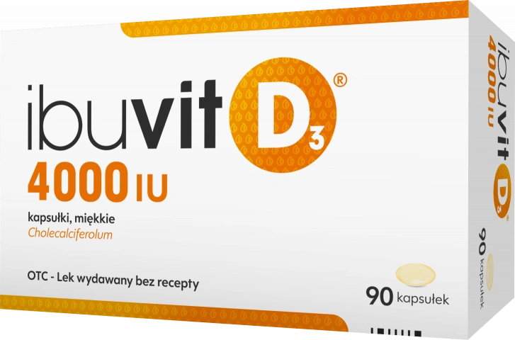 Ibuvit D3 4000 IU to suplement diety zawierający witaminę D₃ (cholekalcyferol), który wspomaga prawidłową mineralizację kości i zębów oraz funkcjonowanie układu odpornościowego. Witamina D pomaga wchłaniać wapń z jelit, zmniejsza jego wydalanie przez nerki i wspiera budowę kości. Suplement ten jest szczególnie polecany w profilaktyce niedoborów witaminy D, zwłaszcza u dorosłych z otyłością, w okresach zmniejszonej ekspozycji na światło słoneczne (od października do kwietnia).