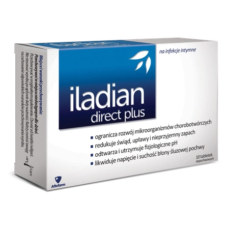 Wyrób medyczny Iladian direct plus przywraca i utrzymuje fizjologiczne pH pochwy, przez co stwarza warunki hamujące rozwój bakterii wywołujących zapalenie pochwy oraz drożdżaków z rodzaju Candida. Tymczasem dodatek inuliny wspiera naturalną florę bakteryjną, która zapobiega nadkażeniom drobnoustrojami odpowiedzialnymi za infekcje w układzie moczowo - płciowym.