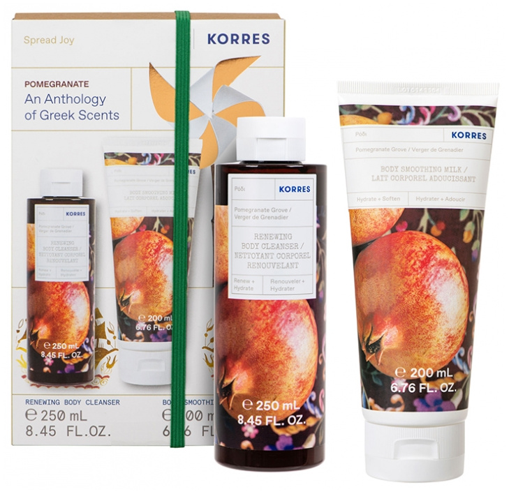 Korres Spread Joy Pomegranate Zestaw – Żel pod prysznic i Mleczko do ciała o zapachu soczystego granatu