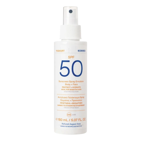 Korres Sunscreen Spray Emulsion Body + Face SPF50+ – lekka emulsja ochronna z jogurtem i witaminą E