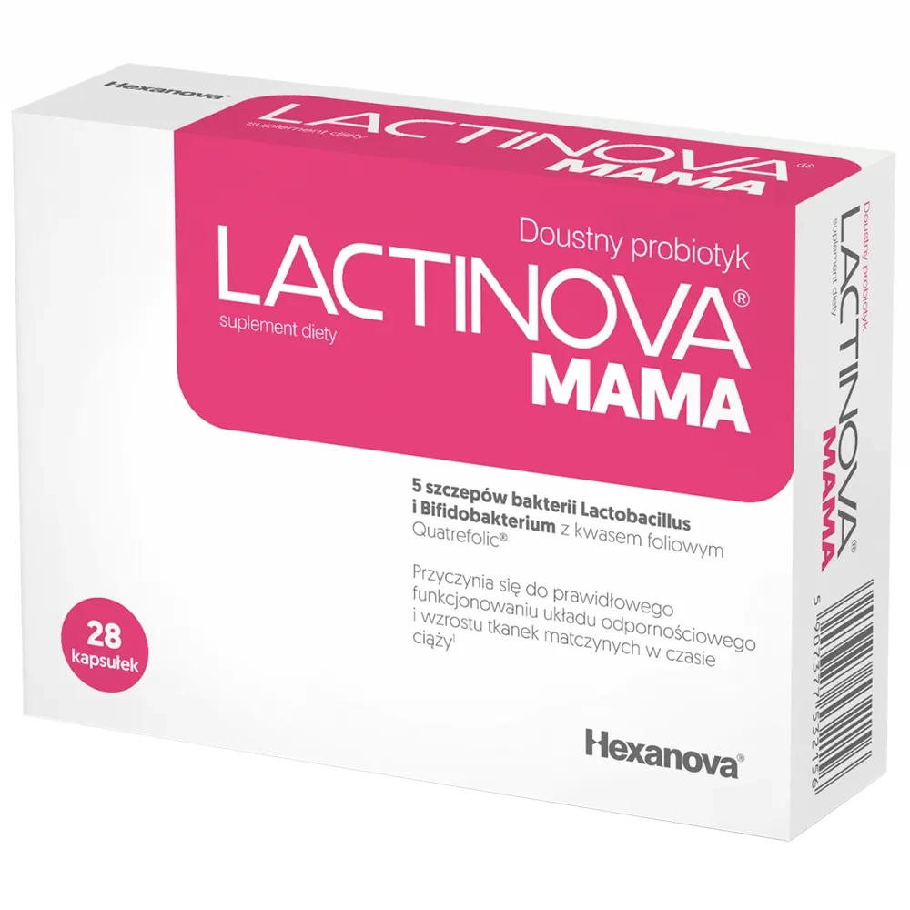 - LACTINOVA MAMA to probiotyk umożliwiający uzupełnienie mikroflory jelitowej w okresie planowania ciąży, jej przebiegu oraz w trakcie karmienia piersią.
